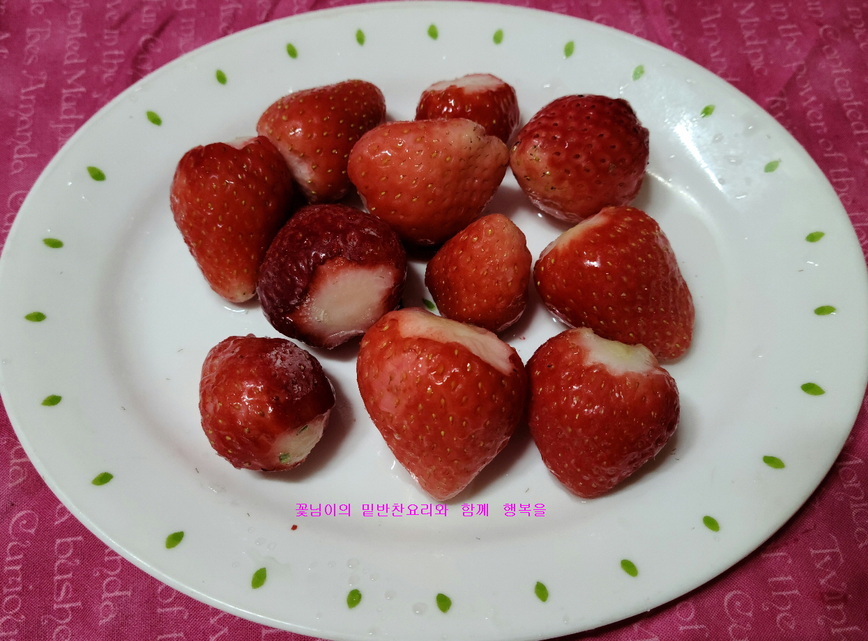 냉동실에 두었던 딸기를 꺼내서 녹혀준다.