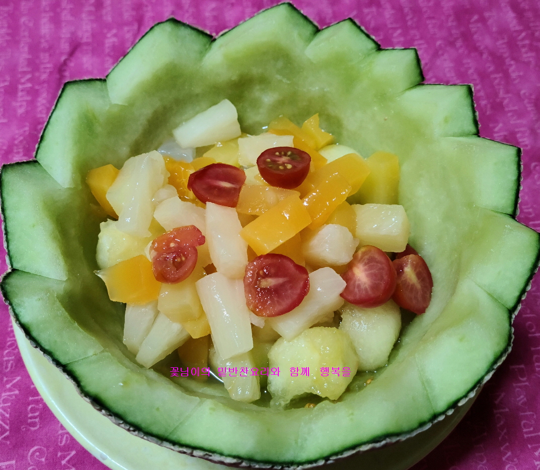 재료 : 메론300g, 딸기250g ,체리 3개,
