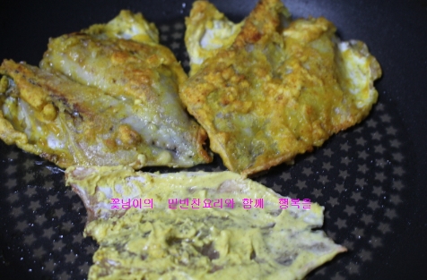 주재료 : 말린열기4마리(250g),튀김가루 60g,울금가루 2g,