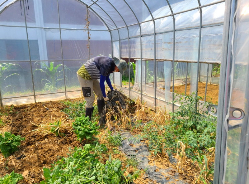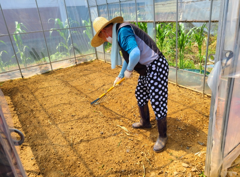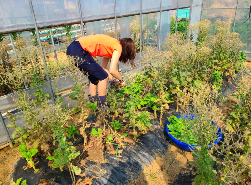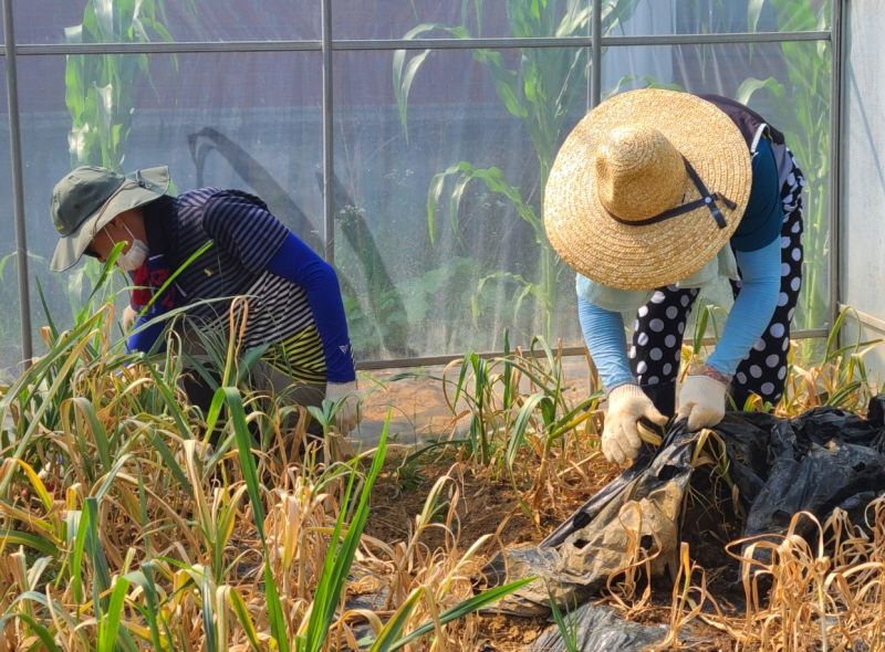 하우스 10동 잡초제거하고 마늘수확