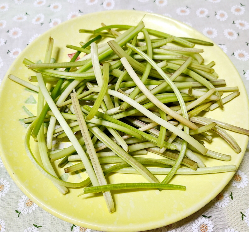고구마줄기는 약 5~~6cm로 썰어준다.