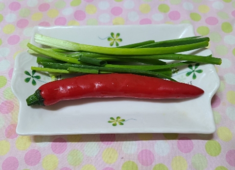 고명으로 홍고추와 쪽파를