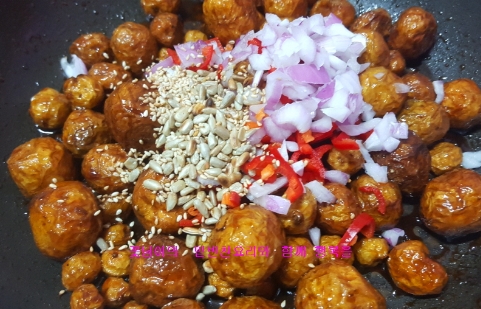 튀긴감자랑 홍고추 적색양파를 넣어준다.