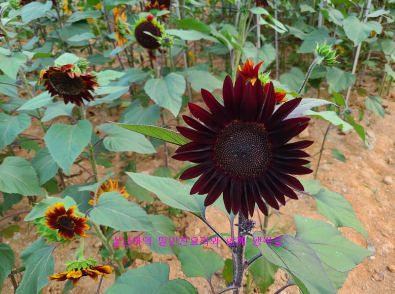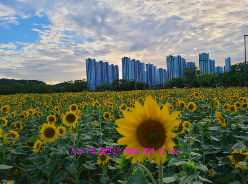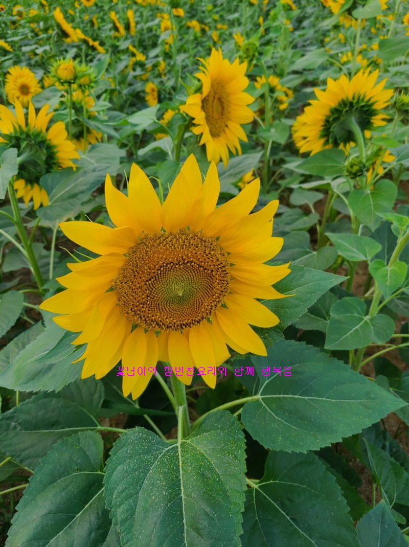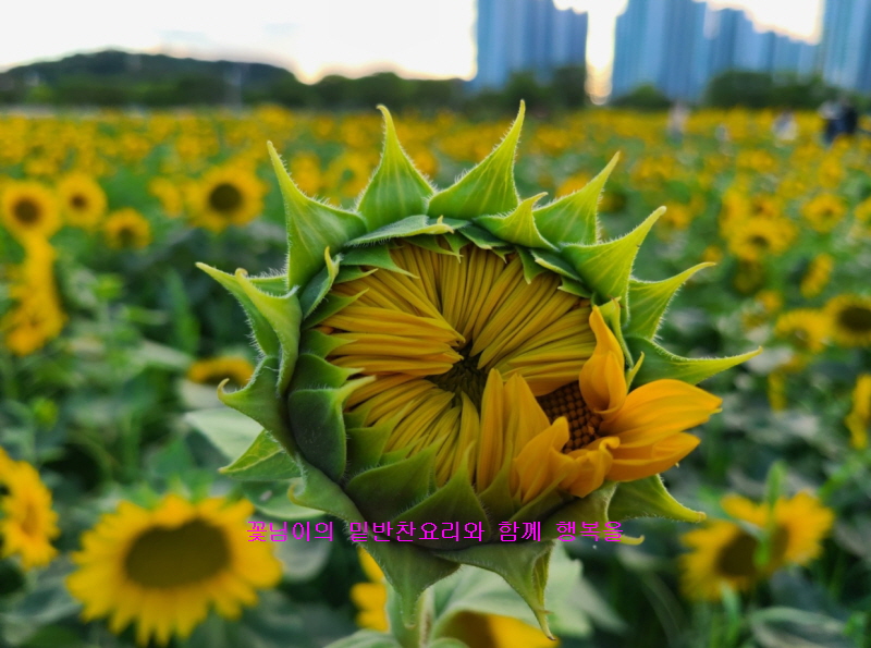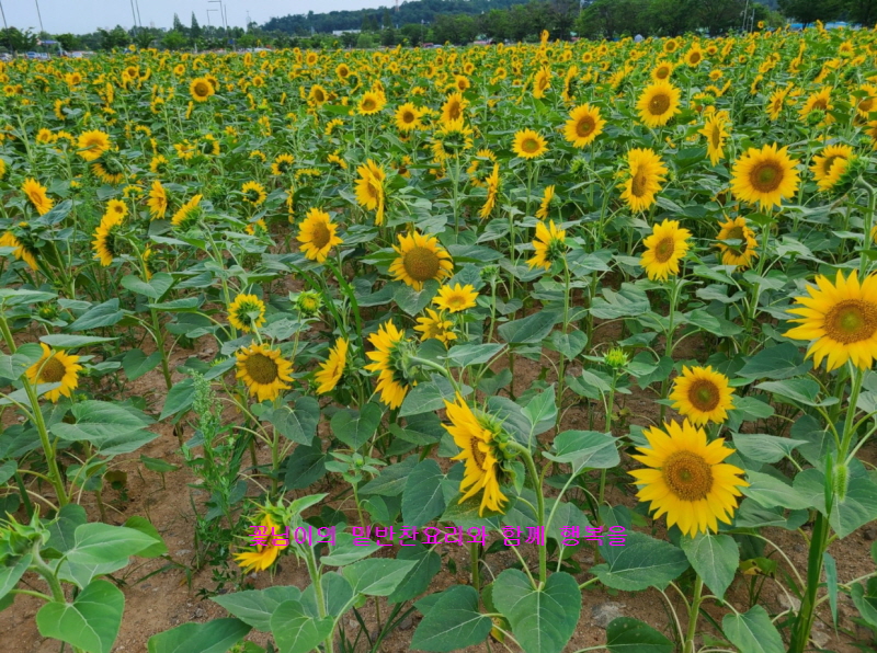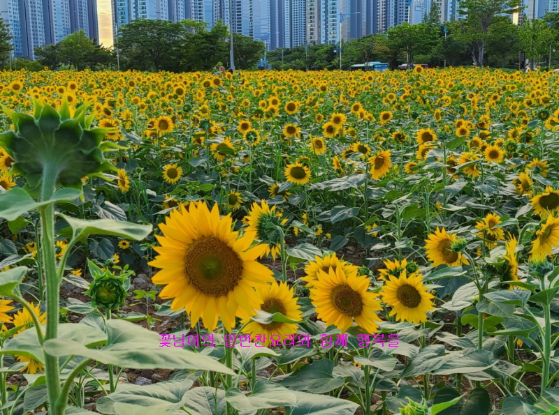 해바라기꽃속에 사람들이 인산인해를 이루고