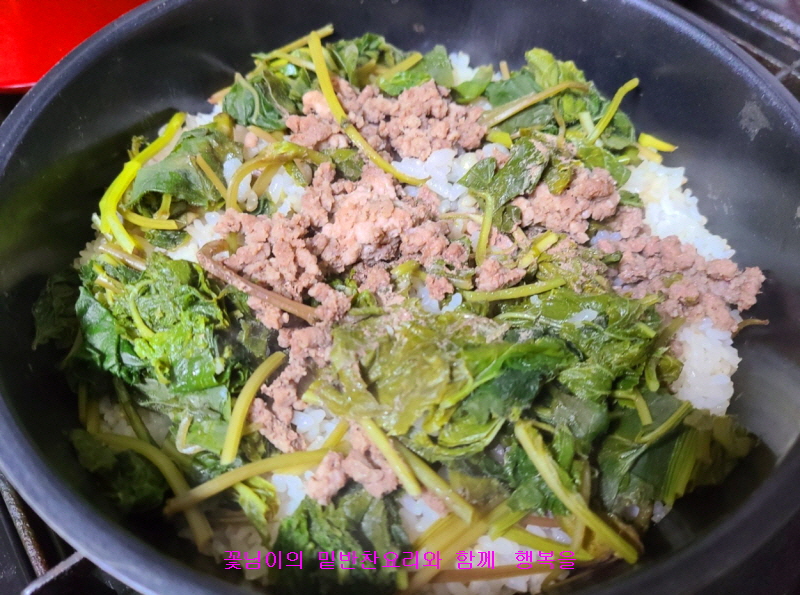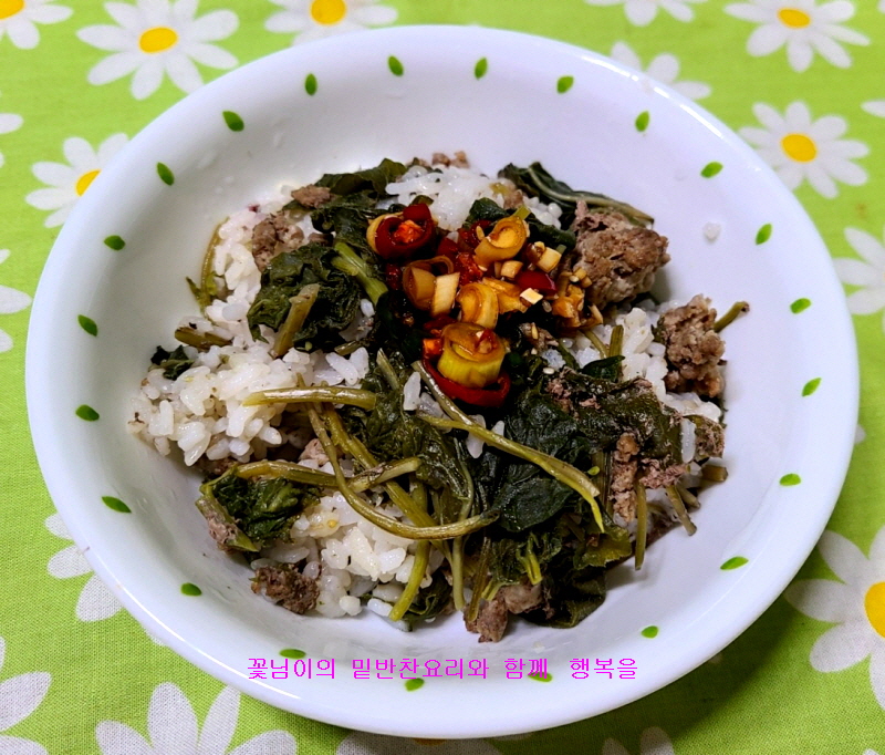 취나물을 얹져서 한소금 뜸을 뜰인다.