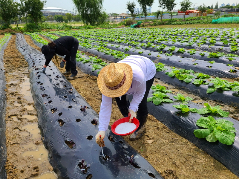 비료를 한수저씩 넣는다.