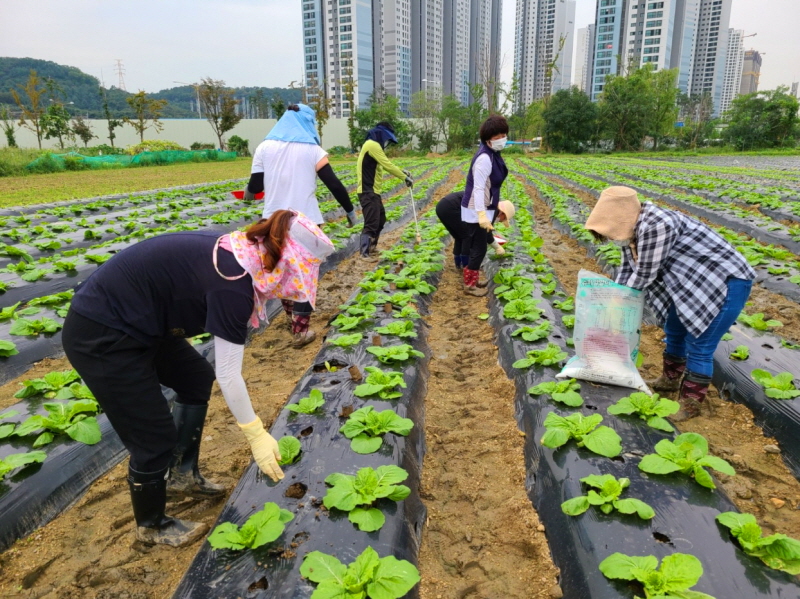 잘 자란 배추는 가운데 구멍을 뚫고