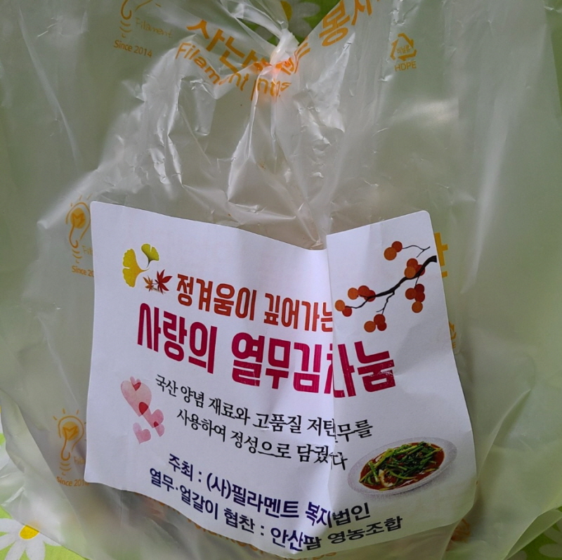 열무김치 1,200가구 나눔을 한단다.