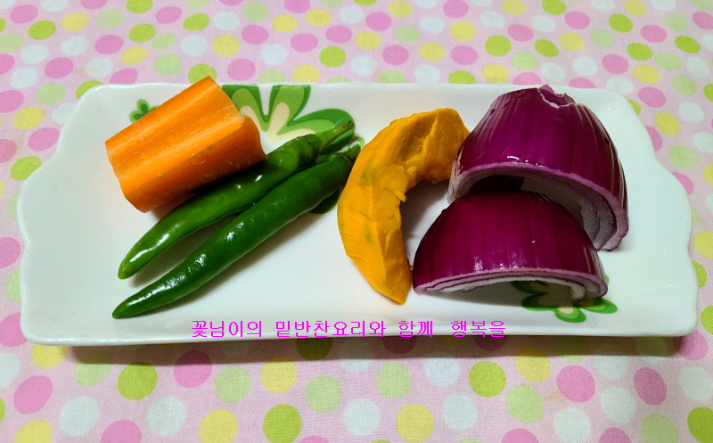 당근, 청양고추, 단호박, 적색양파를 준비한다.