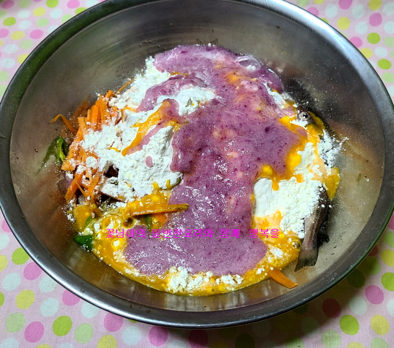 도루묵에 모든 재료를 넣어서 반죽을 해준다.